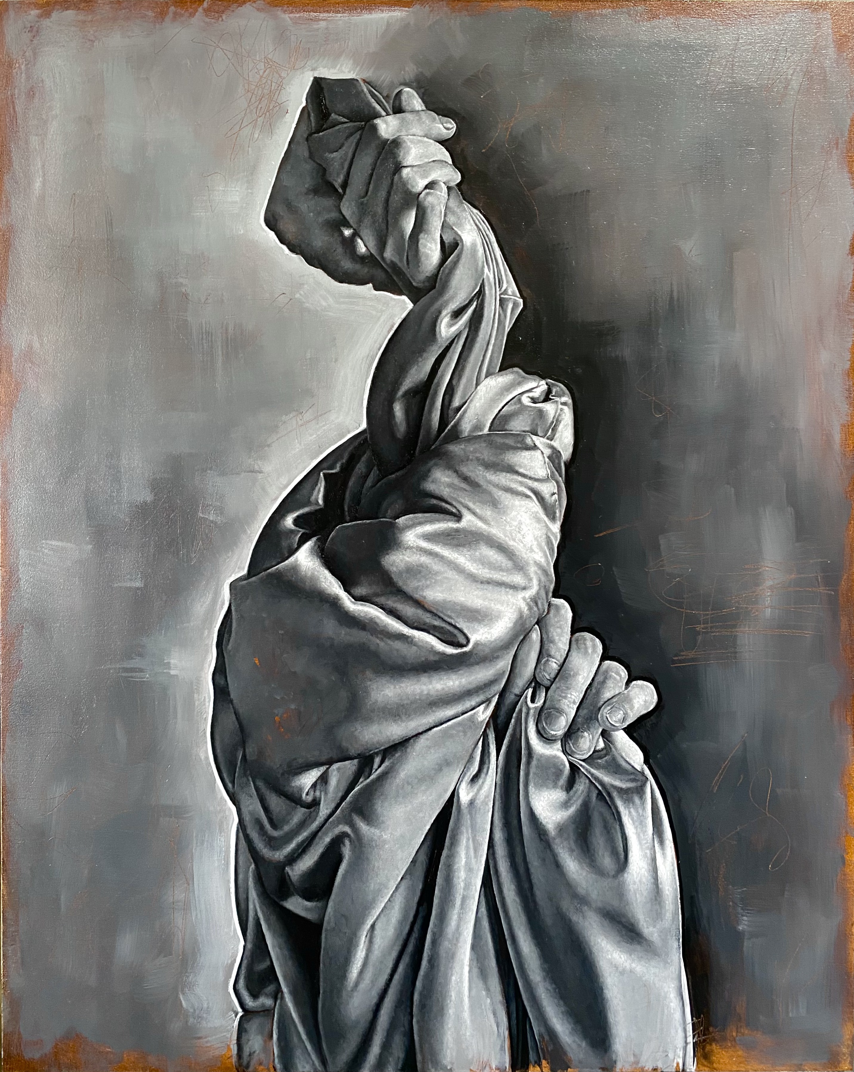 R: I drew all through high school, weird fantastical illustrations. Then for a short while I explored graffiti and spray paint, but mostly drew “pieces” in my sketchbook. When I met my mentor, I learned how to draw and paint classically. Now I tend to say I’m a hyper-realist / contemporary realist.